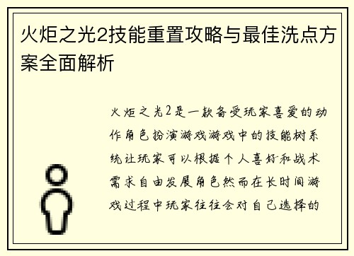 《火炬之光2》是一款备受玩家喜爱的动作角色扮演游戏,其中“漂泊者”这一职业因其独特的玩法和多样化的加点方式,成为了许多玩家的首选。本文将以“点亮命运之路”这一加点方式为中心,详细分析其在游戏中的作用、优缺点以及如何根据不同的游戏需求进行合理加点。文章将从四个方面入手:加点的基础理念、核心技能的选择与搭配、装备的选择与配合、以及技能加点的策略与优化。通过这四个方面的分析,旨在帮助玩家更好地理解如何通...